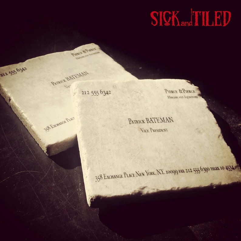 Patrick batemans new business card american psycho. Watching patrick bateman sweat over the minutia of paul allen's business card in american psycho is one of the craziest, most terrifying, and funniest moments in cinema (along with many, many other moments from the film adaptation of the bret easton ellis novel). Bateman slides his card across the table; Well youre in luck because here they come. American pyscho patrick bateman business card inspired keychain key chain.